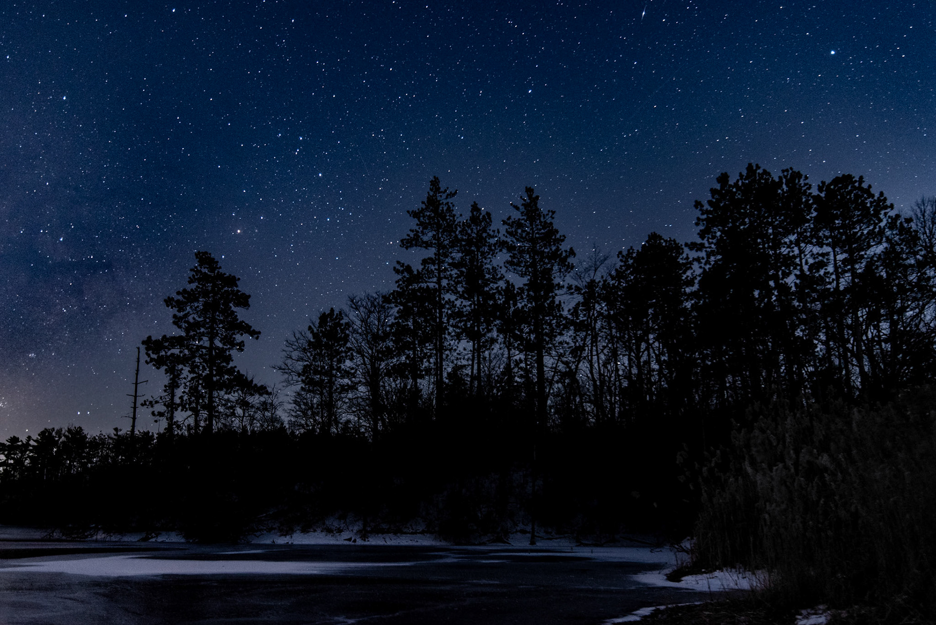 Still waters under a star filled sky